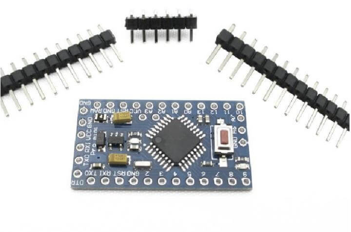 The Arduino Mini Pro was mounted on a 5 x 7 cm perforation-board.